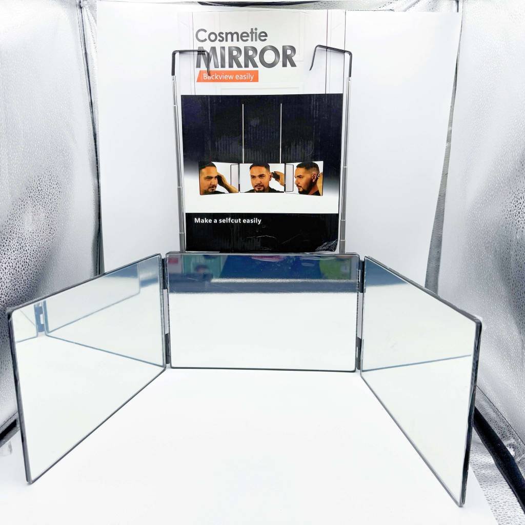 3-Way Mirror with LED 360 Trifold Hair Cut Mirror Adjustable Height 3 Way Self Haircut Mirror Folding Trifold Haircut
